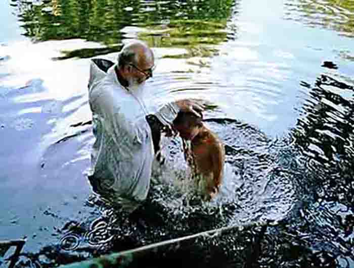 Ну а ежели и впрямь это сложно понять, обратимся к фотографиям и засвидетельствуем распространенную практику не только древлеправославной, но и официальной реформаторской церкви. Можно привести многочисленные примеры, когда, священник или епископ, совершающие погружательное крещение, находятся в воде, что является обычной практикой, с которой, как правило, никто не спорит.